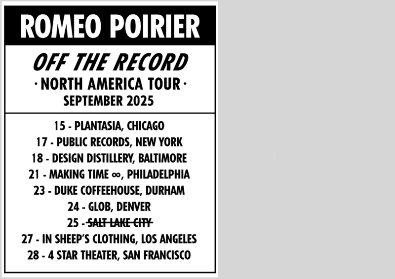 Roméo Poirier's tour flyer by Simon Burger, 2025